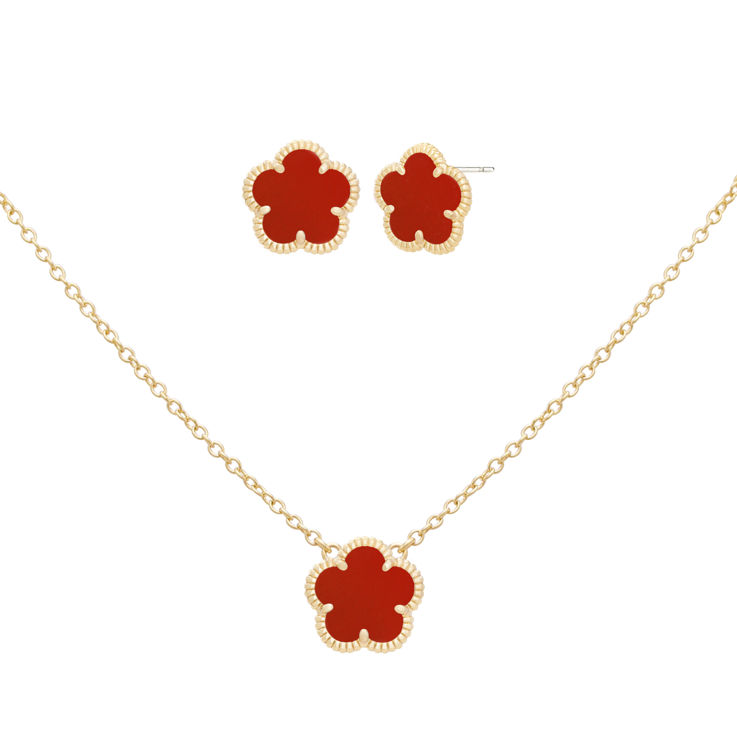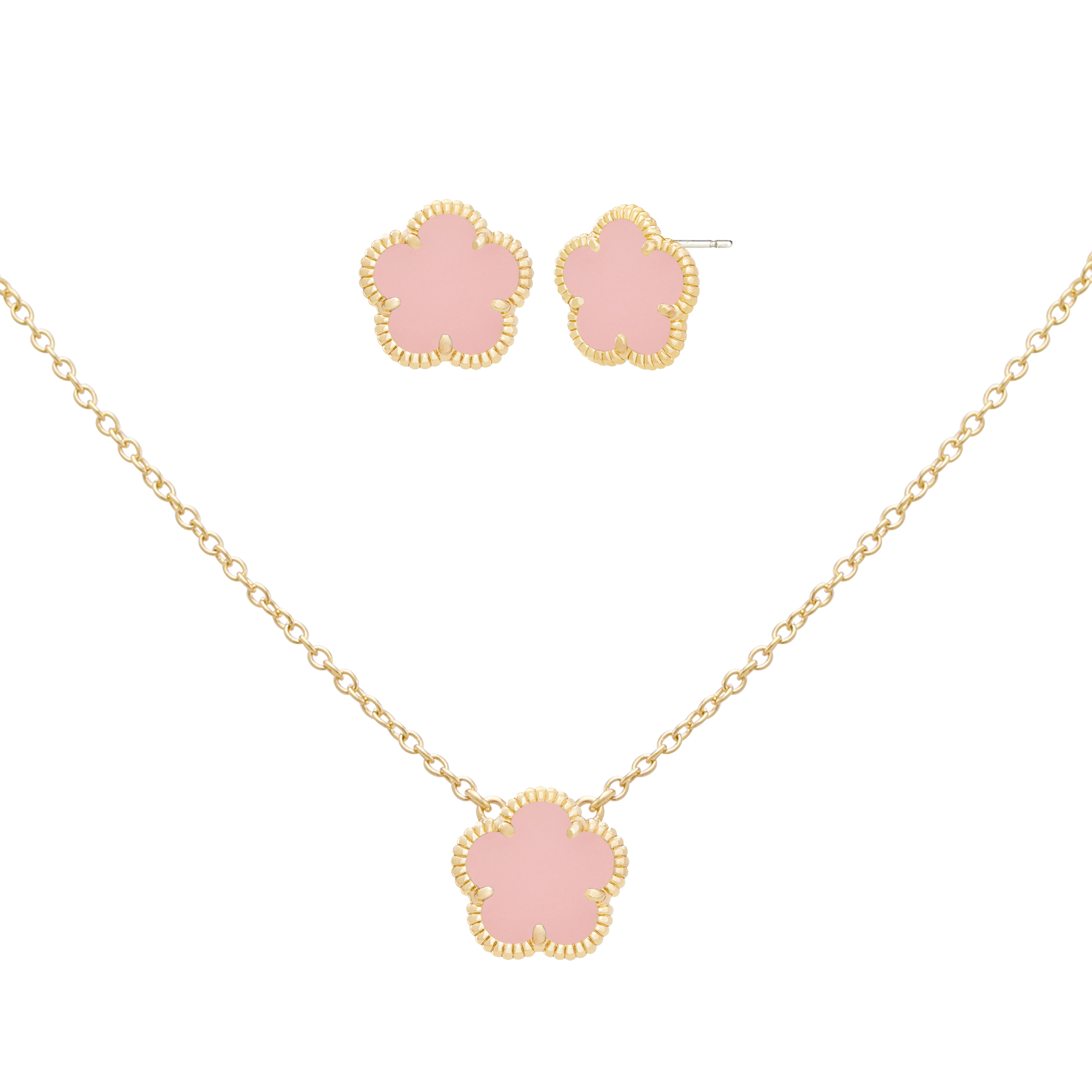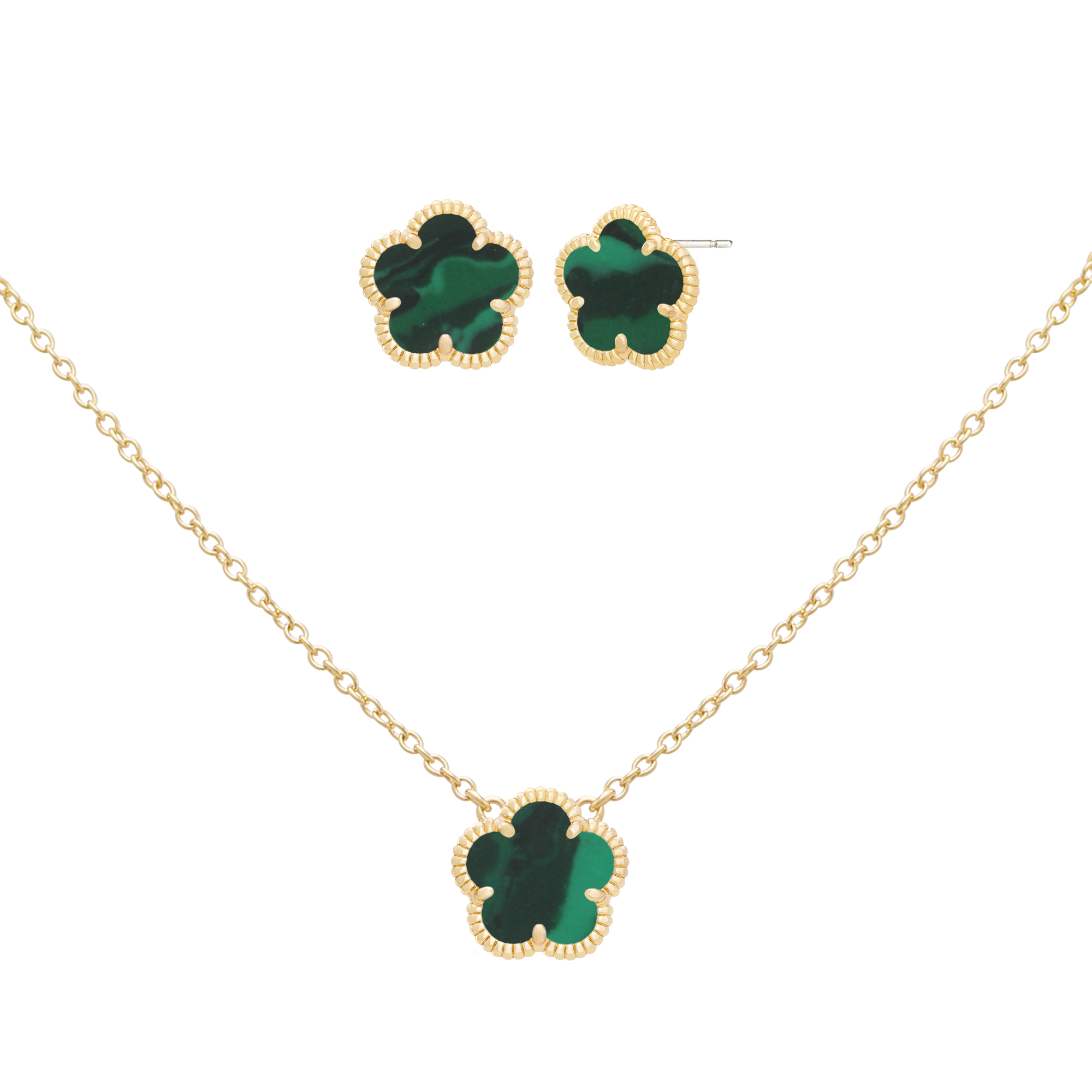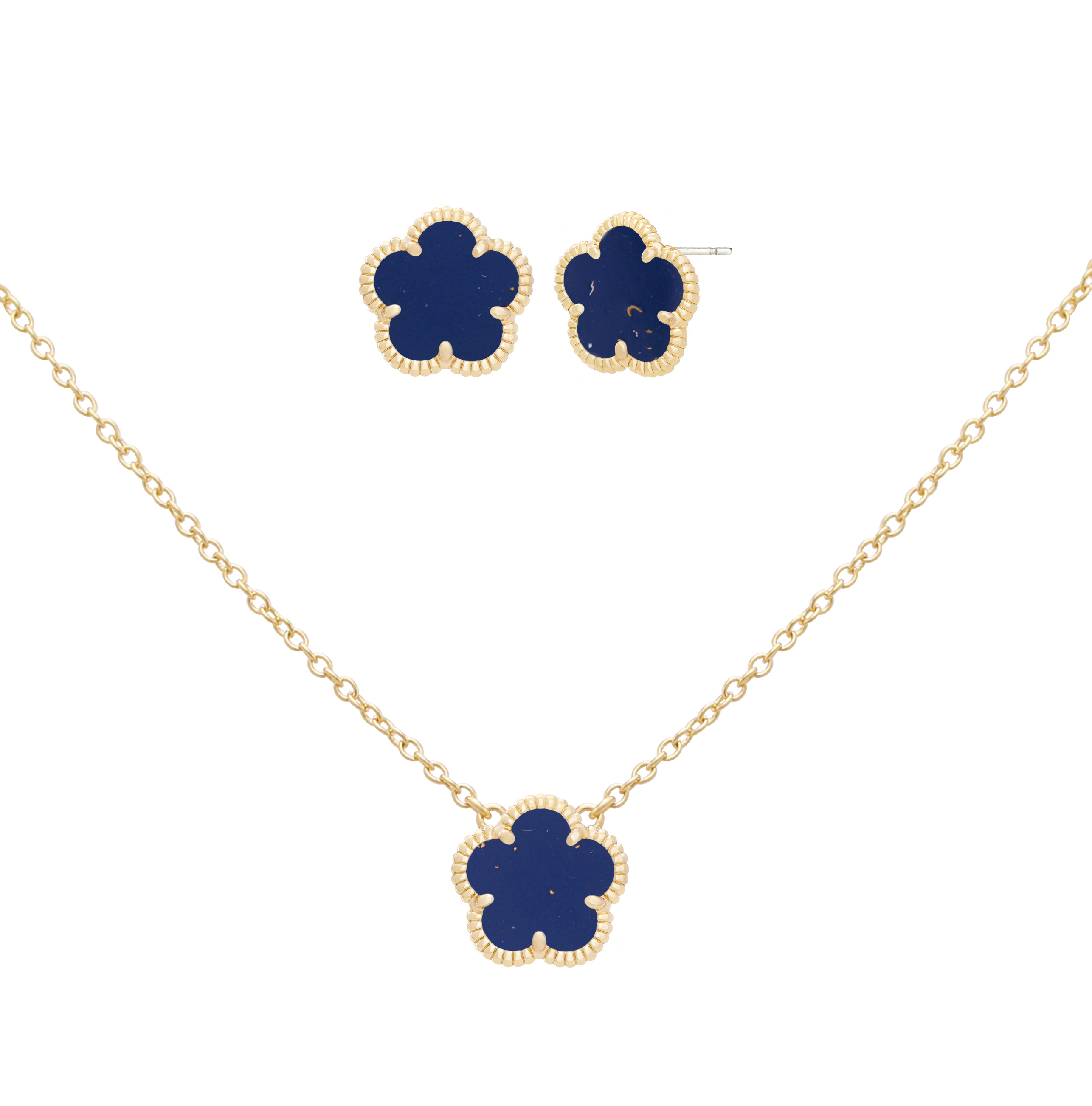 From the Flower Collection. JanKuo's 2-Piece set is inlaid with synthetic dark sapphire stones. Crafted of solid 14-karat yellow goldplated brass, this exquisite collection features stud earrings with a secure butterfly back closure and a pendant necklace equipped with a lobster clasp for ease of wear.