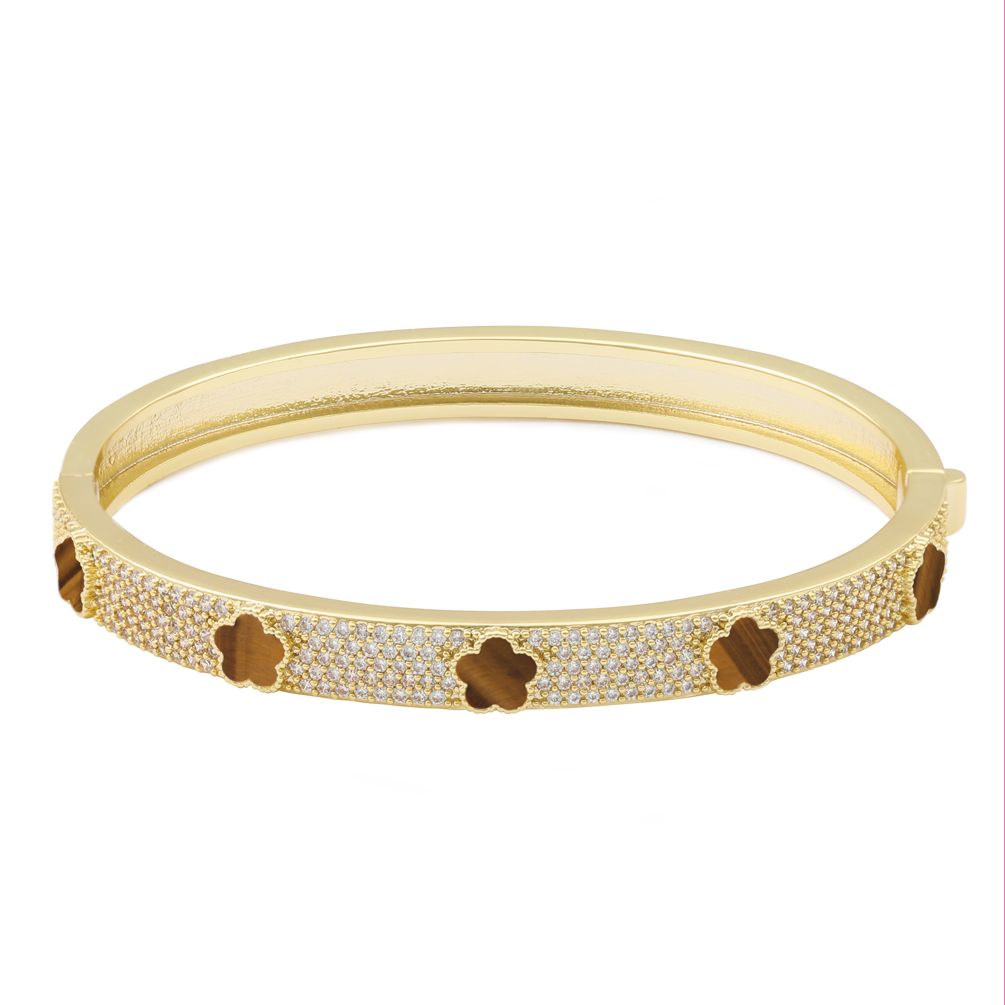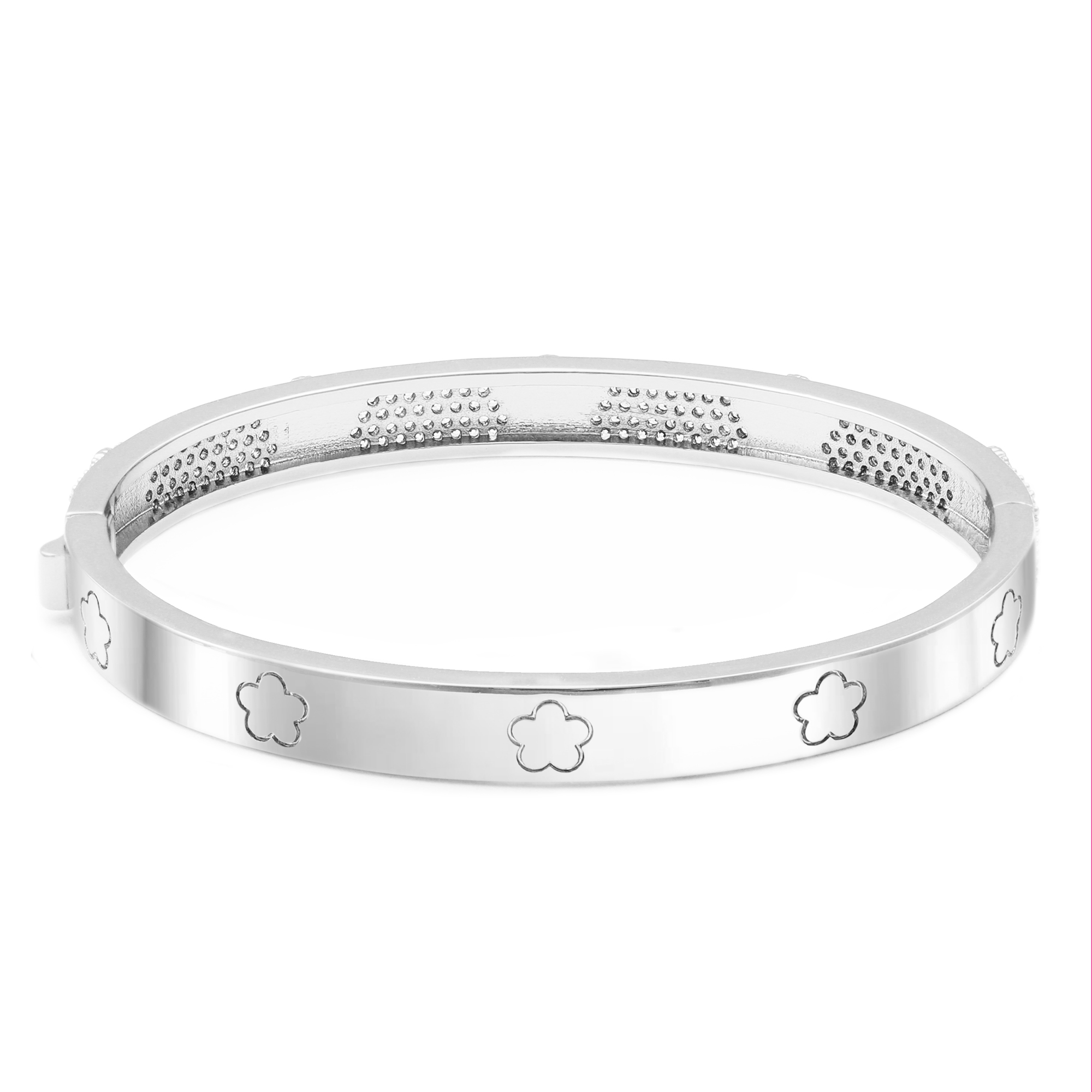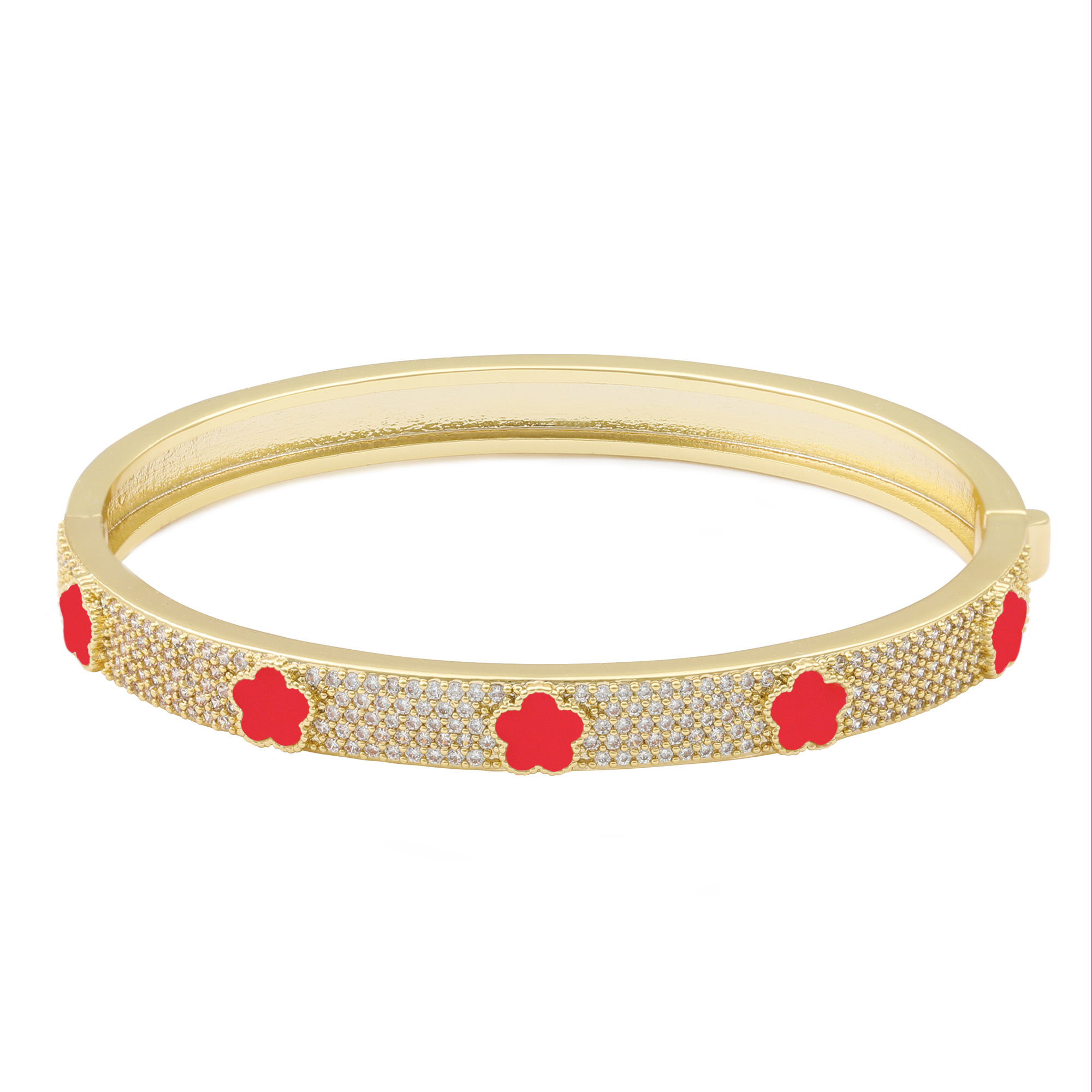 From the Flower Collection. This bangle bracelet from JanKuo is crafted of 14K goldplating and features synthetic emerald flowers and clear cubic stones.