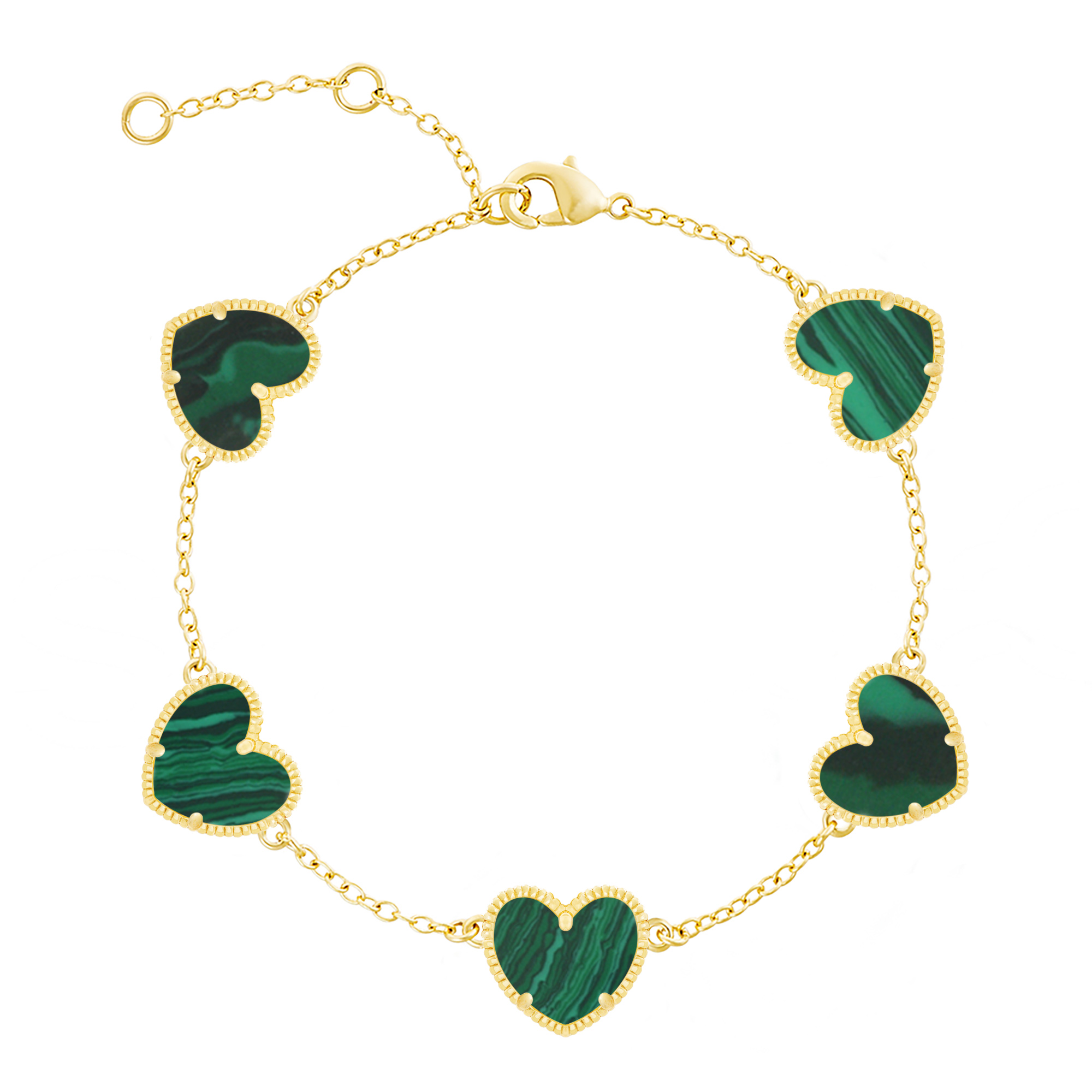 From the Heart Collection. Adding this five-heart synthetic emerald bracelet to your outfit will add a touch of glamour.