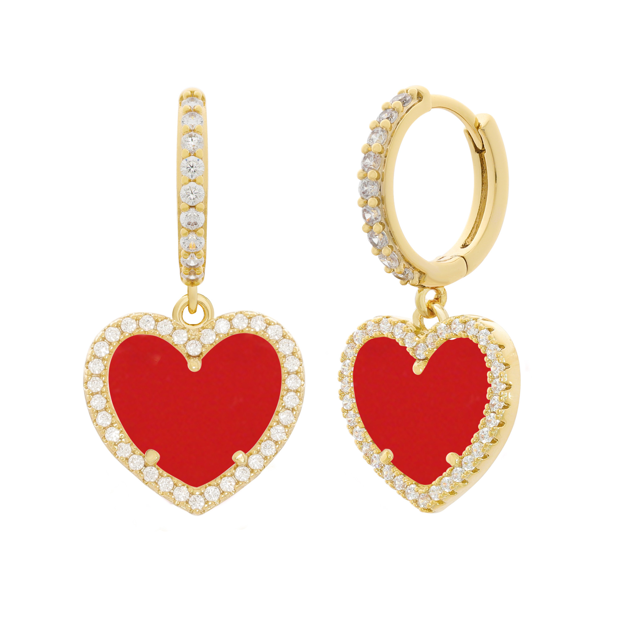 From the Heart Collection.You’ll fall in love with these delicate drop earrings by JanKuo. Cast from gold-plated brass, these feature a cubic zirconia-adorned huggie connected to a drop heart charm.